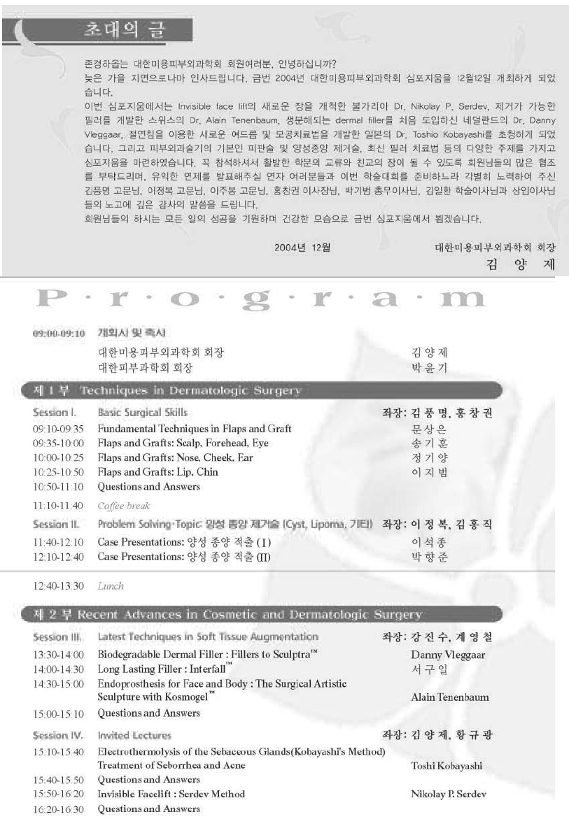 제10차 대한피부미용외과학회 심포지엄(2004년)